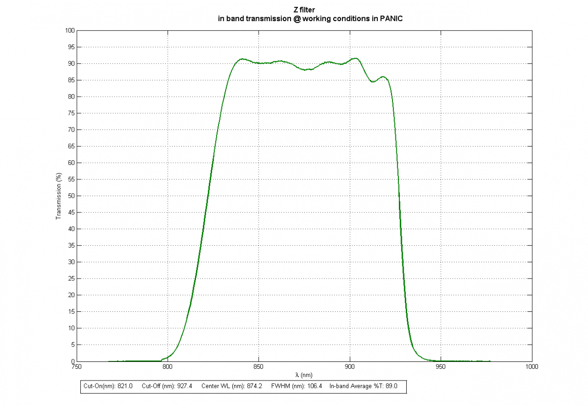 The cryogenic optics has three flat fold mirrors with diameters up to 270 mm and eight lenses with diameters between 115 mm and 250 mm. A compact filter unit can carry up to 15 filters distributed over four filter wheels. The wheels have cryogenic stepper motors.