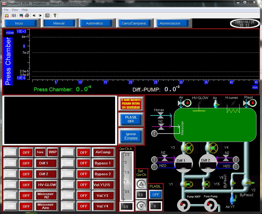 Captura de pantalla del nuevo sistema digital de control de las cámaras de aluminizado de Calar Alto, recientemente renovado por completo por el personal del Centro Astronómico Hispano Alemán