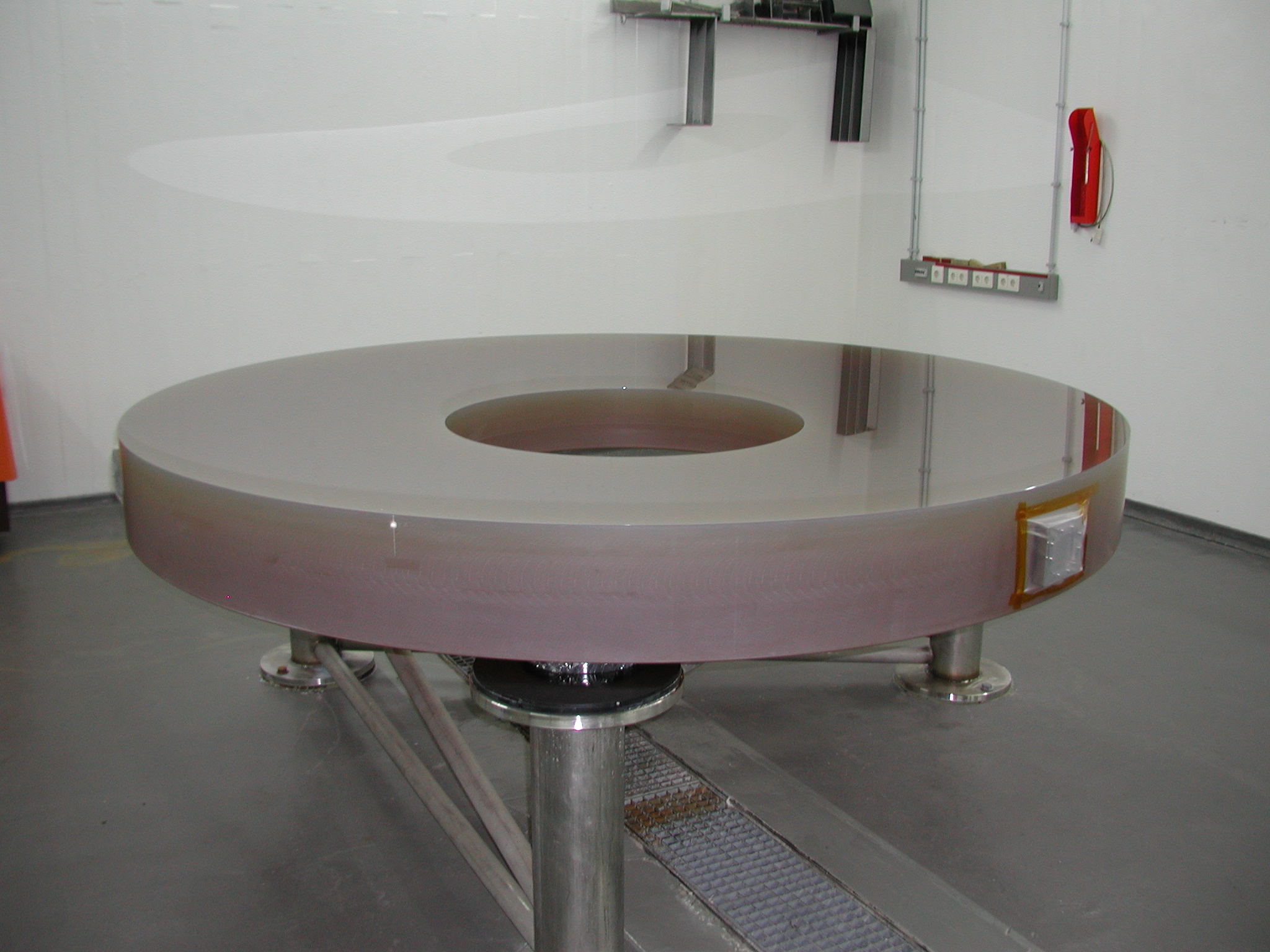 | El espejo primario del telescopio de 2.5 m que para la Universidad de Moscú construye Sagem, antes de su aluminizado en el Observatorio de Calar Alto |