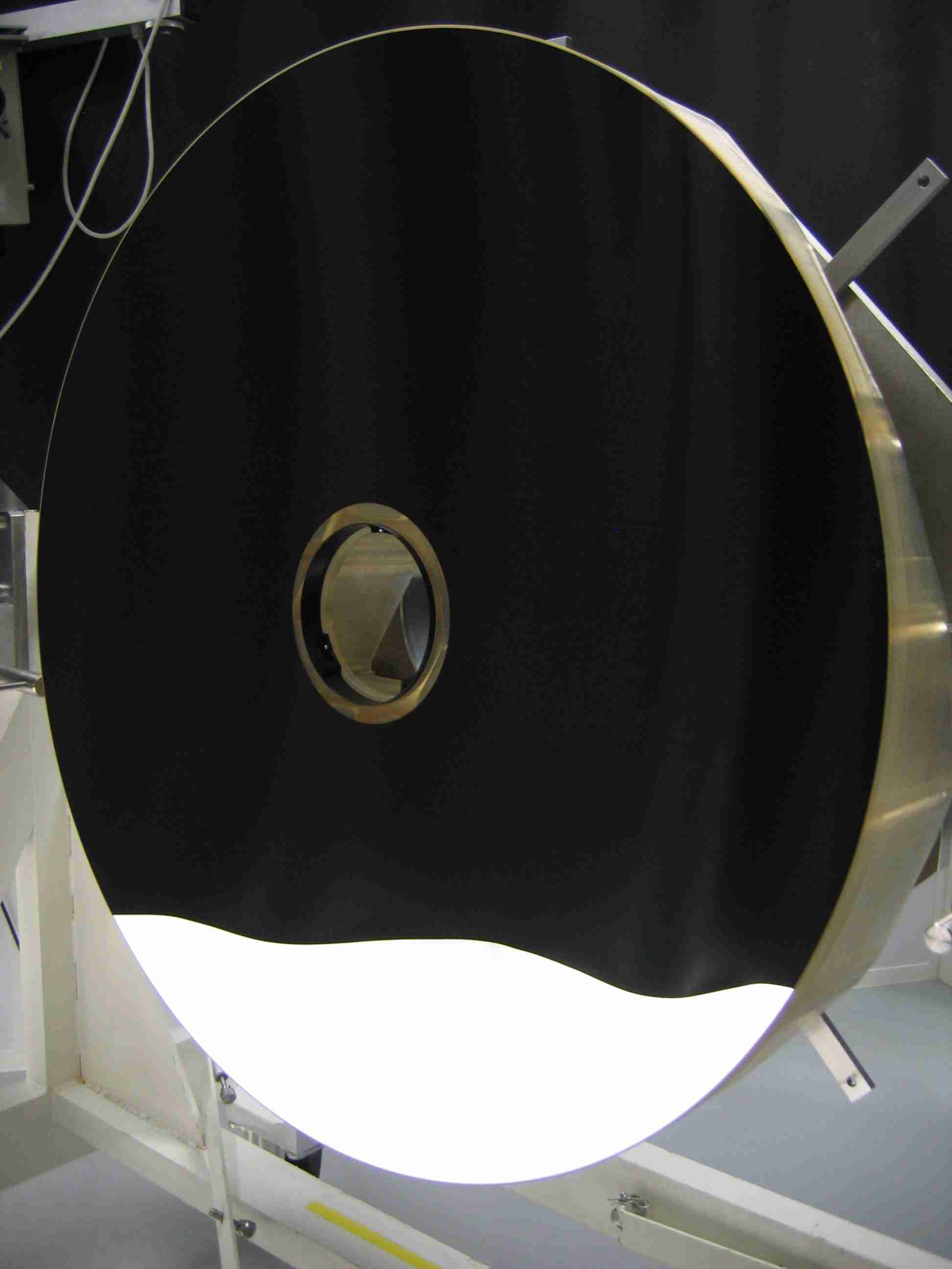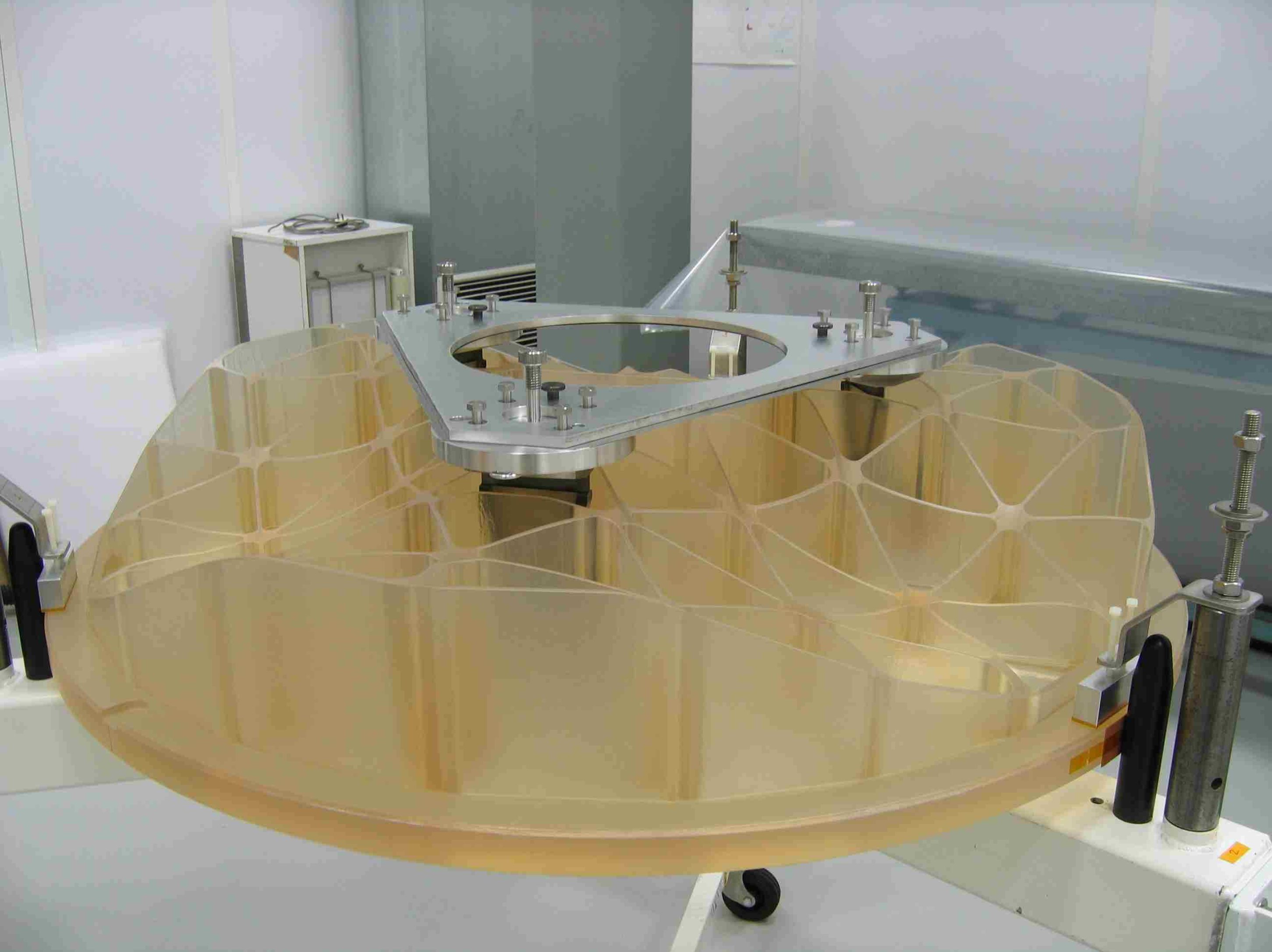 El espejo primario del telescopio espacial Herschel a la salida de la cámara de vacío del Observatorio de Calar Alto tras su aluminizado. Copyright EADS Astrium.