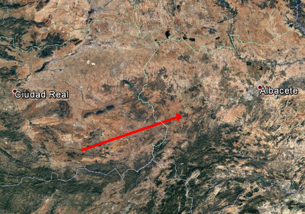 La imagen muestra la trayectoria seguida entre la provincias de Ciudad Real y Albacete, en Castilla La Mancha. La parte luminosa de este fenómeno comenzó a una altitud de 80 km sobre la provincia de Ciudad Real y el objeto se movió después en dirección noreste para finalizar a una altitud de 45 km sobre la provincia de Albacete.