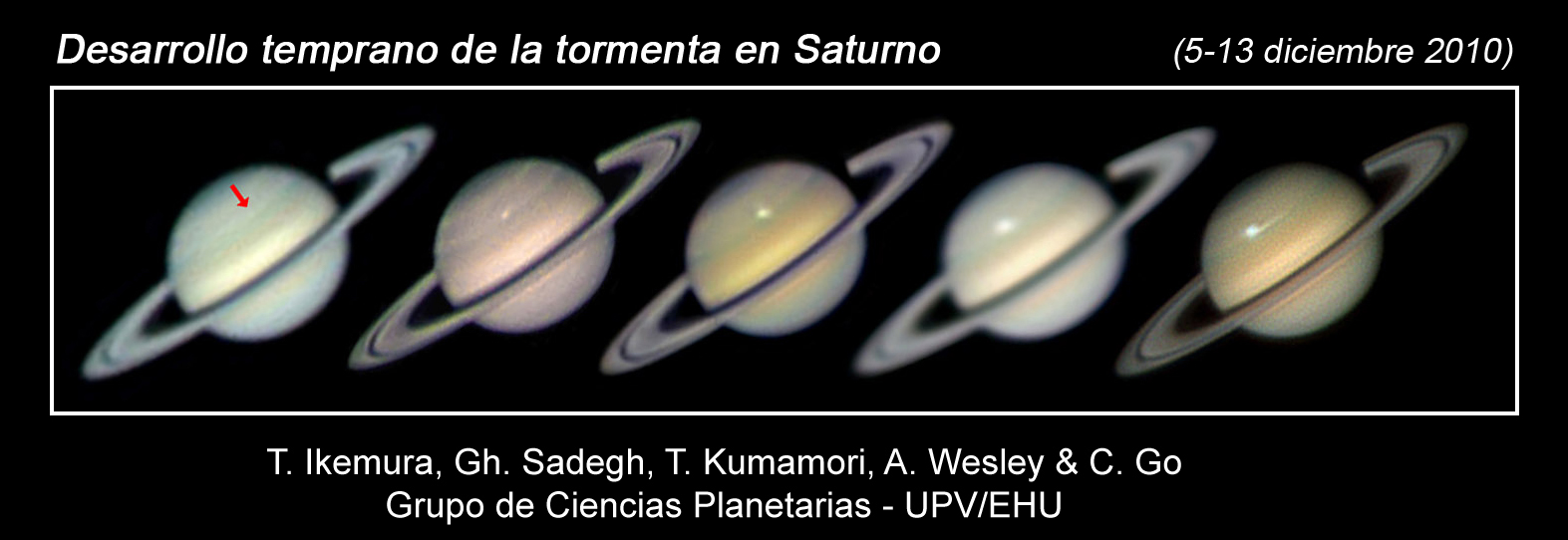 Desarrollo temprano de la tormenta en Saturno. (286 kB)