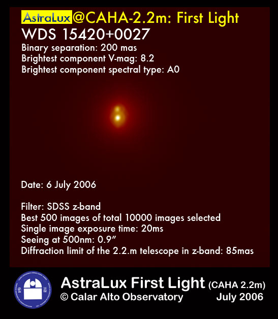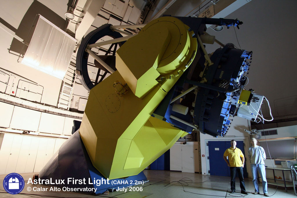 AstraLux has been developed in record time: from the idea to the first light at the 2.2 meter telescope (July 2006) only six months passed. The AstraLux team is part of the Planet and Star Formation Department of the Max Planck Institute for Astronomy, Heidelberg (Germany). The AstraLux team members are Stefan Hippler, Felix Hormuth, Wolfgang Brandner, and Thomas Henning. Stefan Hippler and Wolfgang Brander are well known experts in adaptive optics, a much more complex (and expensive) method to fight atmospheric blurring in ground-based astronomical observations.