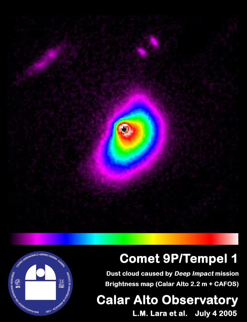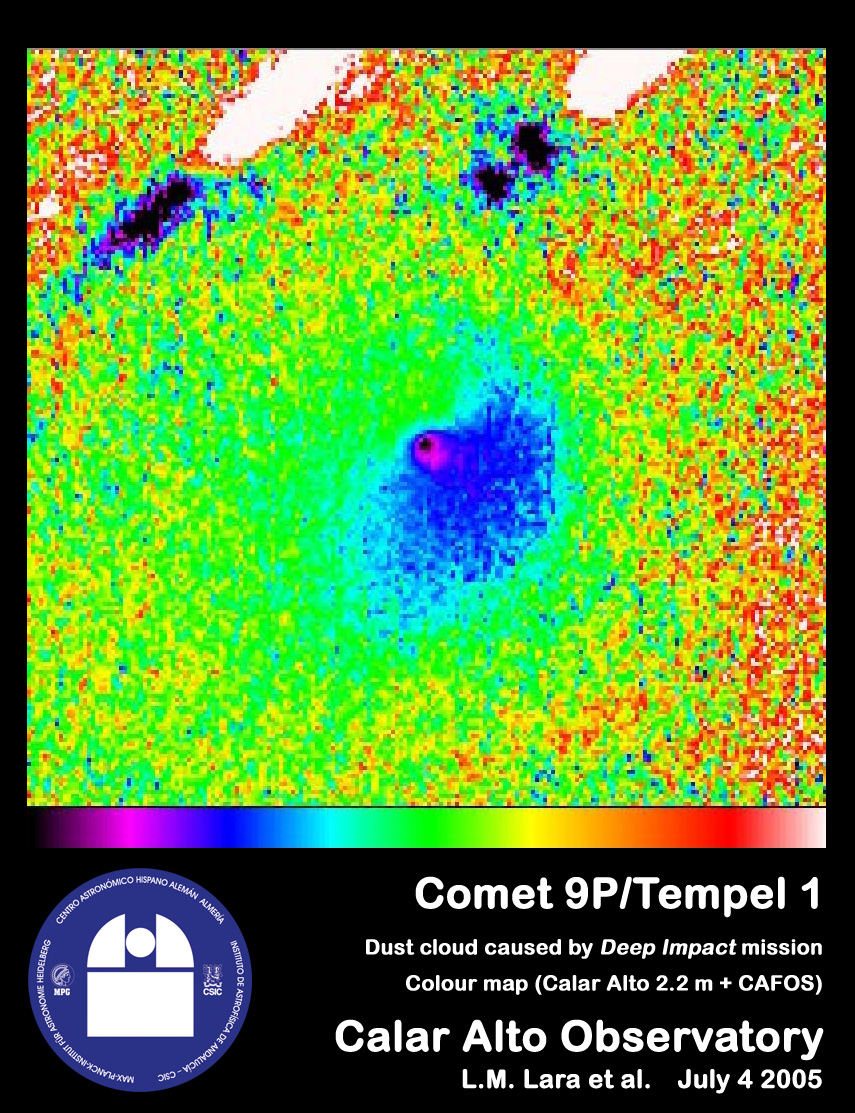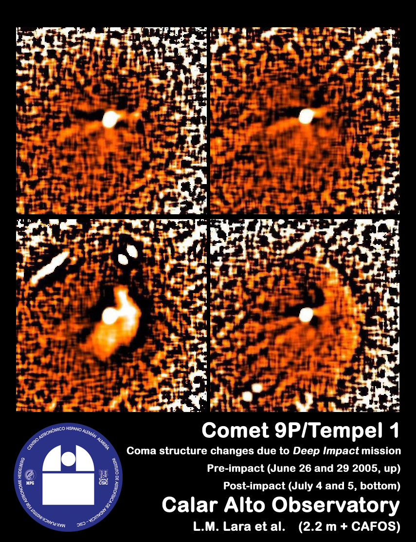 Luisa María Lara (Instituto de Astrofísica de Andalucía-CSIC, Spain) leads an international research team that has performed a complete pre- and post-impact follow up of Deep Impact's target, comet 9P/Tempel 1 . The comet was monitored from June 18 until July 12, 2005, as a follow-up to the long-term campaign started in January 2005. The observations were done from Calar Alto Observatory and from Sierra Nevada Observatory , both placed in South-East Spain.