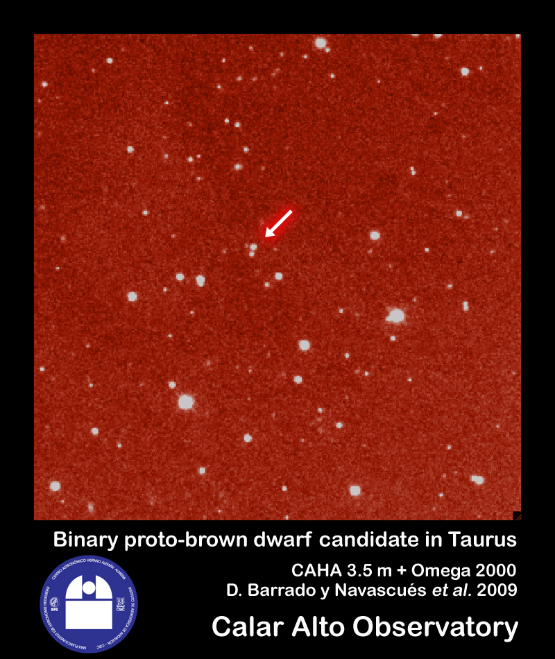 This object, known as SSTB213 J041757, is placed in the constellation of Taurus, inside the dark cloud Barnard 213, at a distance of 450 light-years (140 parsecs). CAHA imaging has shown that the object is in fact a double object, with both components being compatible with the status of Class I proto-brown dwarfs.